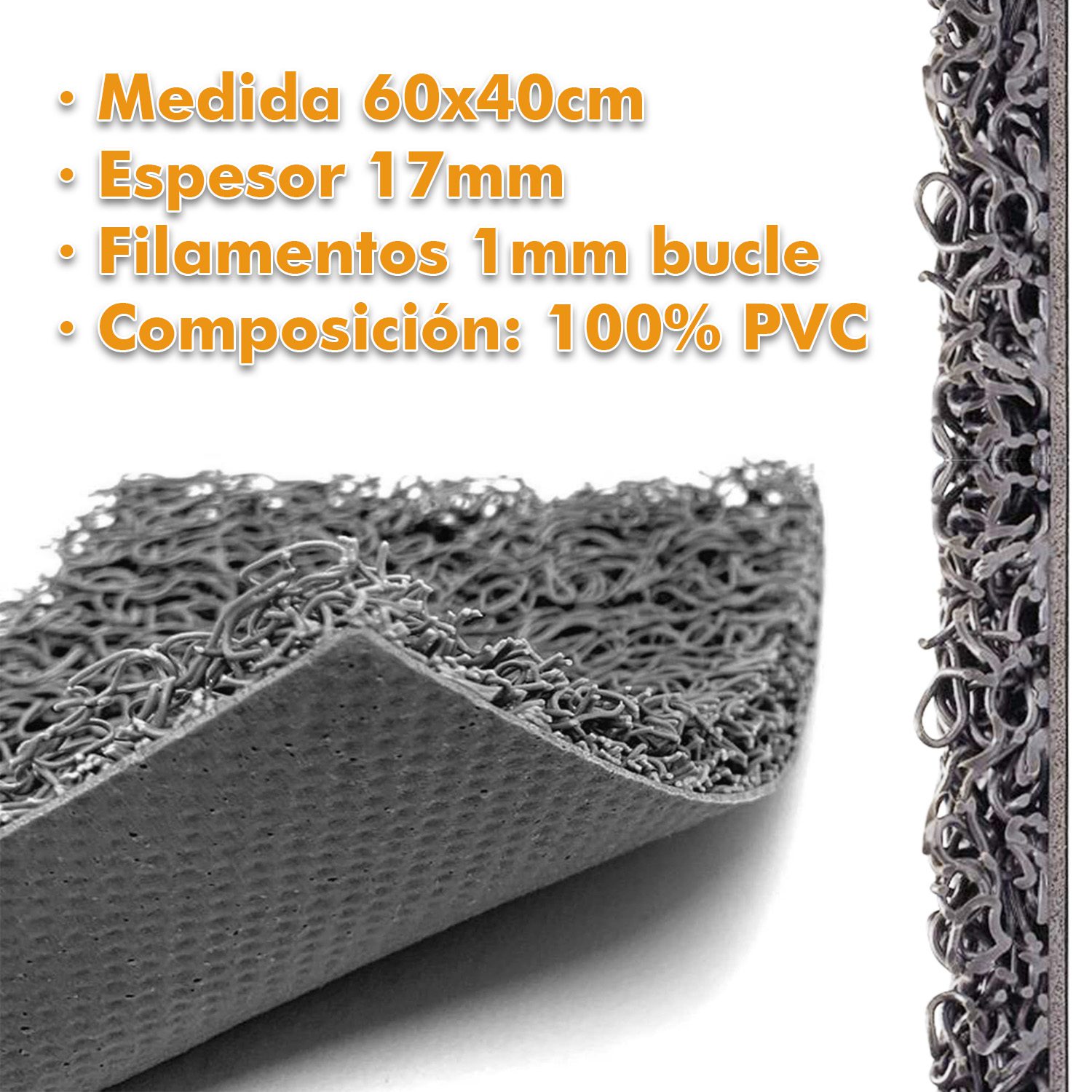 Alfombra Felpudo Entrada Rizo PVC Vinilo Rizos Coil 60x40cm Base Antideslizante – Color Gris