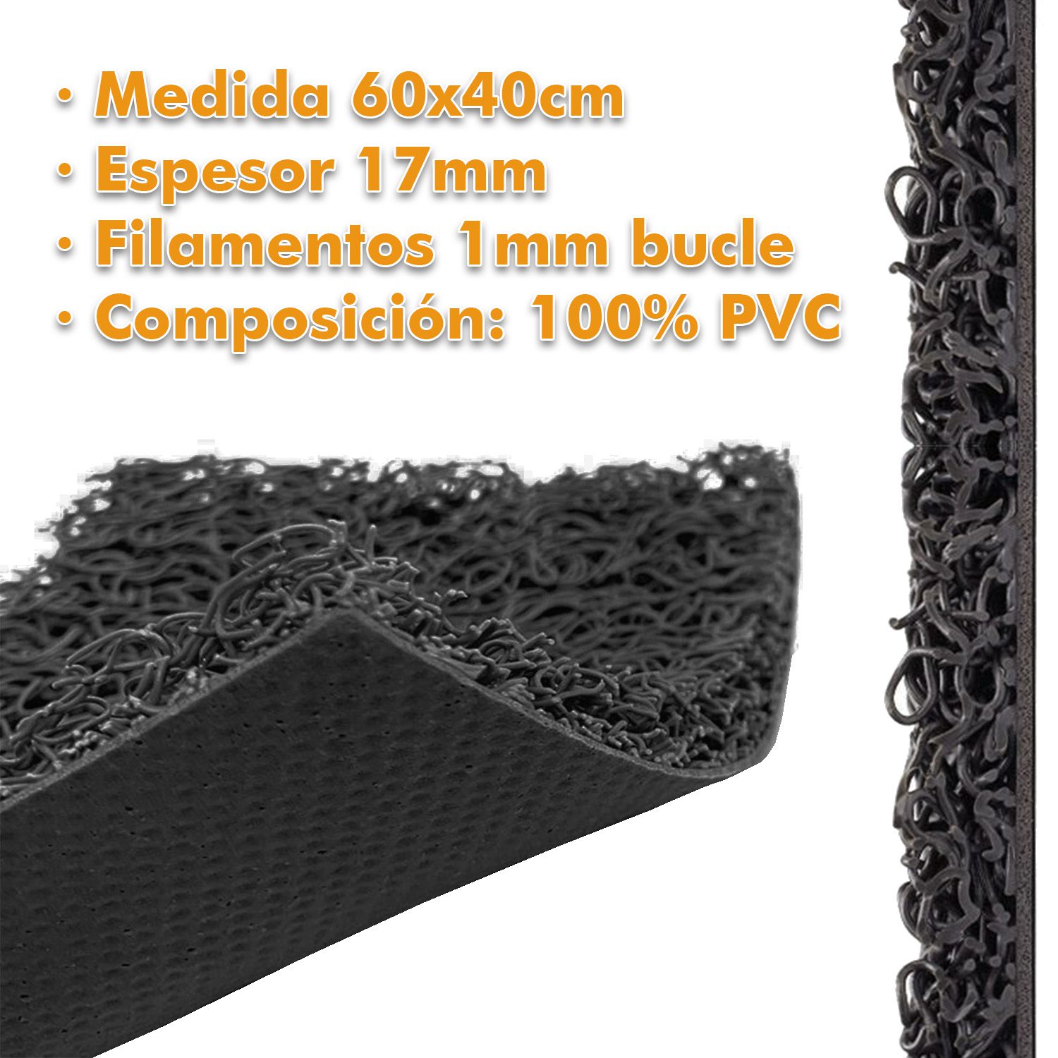Alfombra Felpudo Entrada Rizo PVC Vinilo Rizos Coil 60x40cm Base Antideslizante – Color Negro