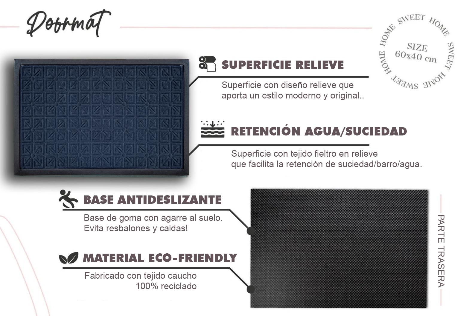 - ✅ Superficie textil de fibras sintéticas ideal para limpieza de calzado antes del paso a estancias interiores.