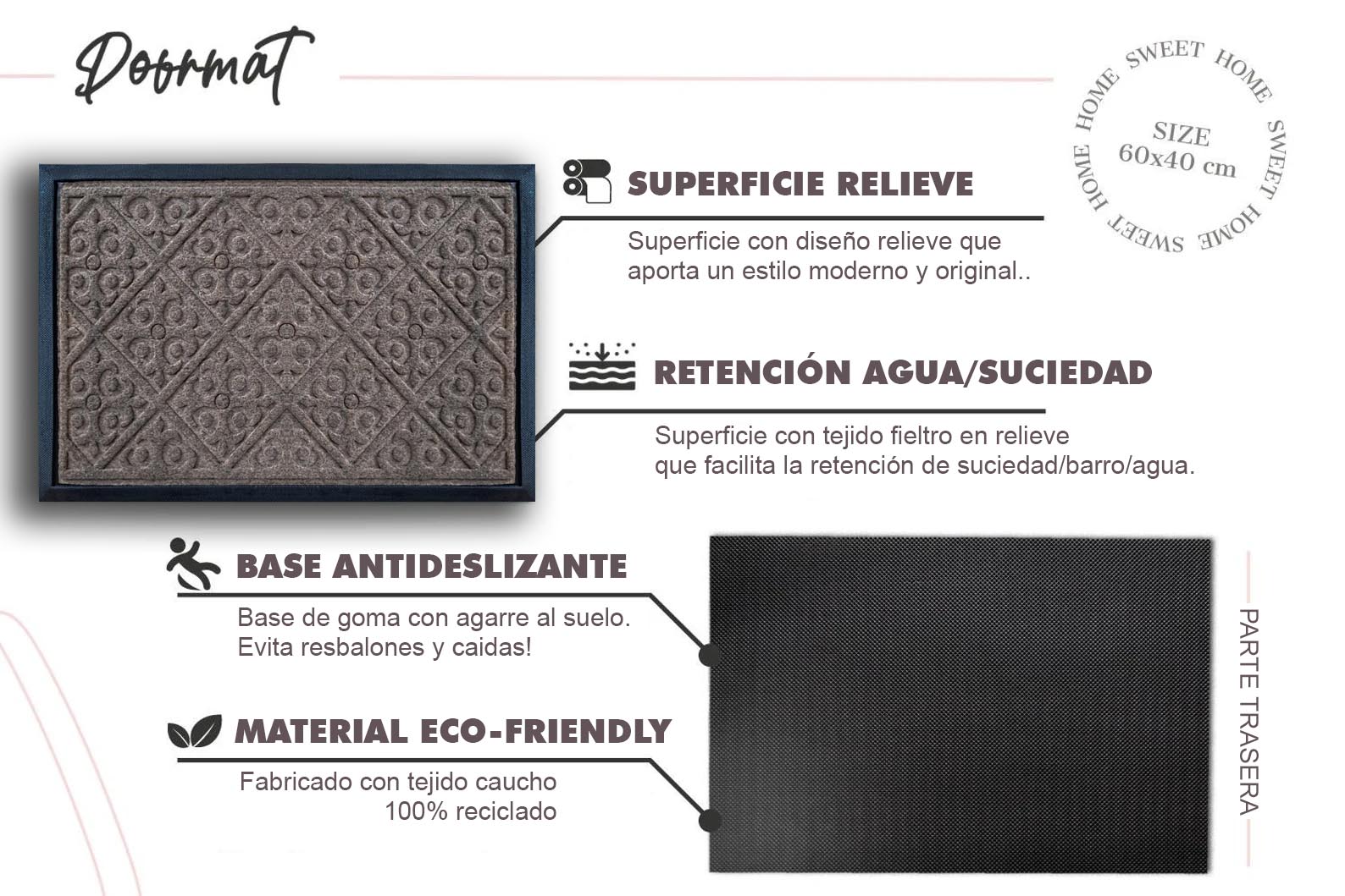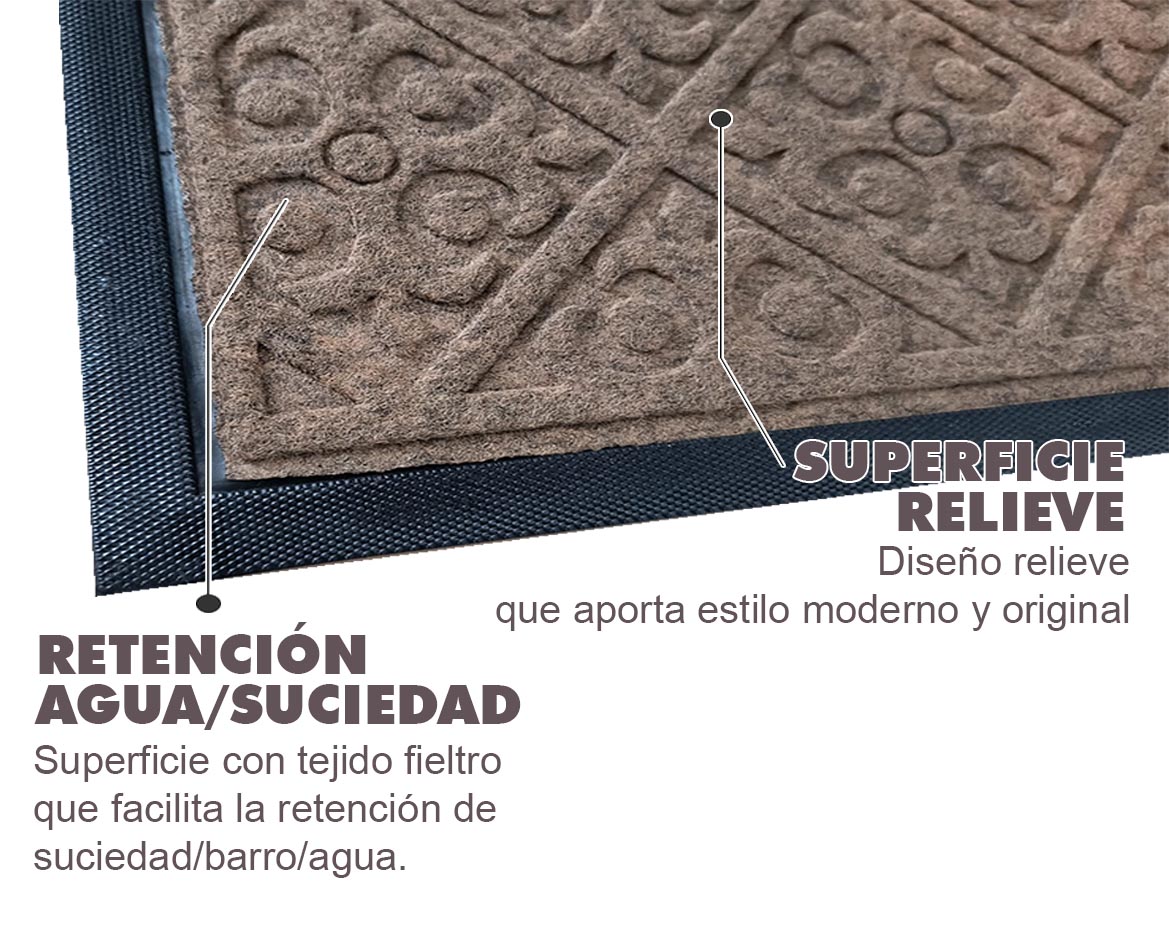 - ✅ Superficie textil de fibras sintéticas ideal para limpieza de calzado antes del paso a estancias interiores.